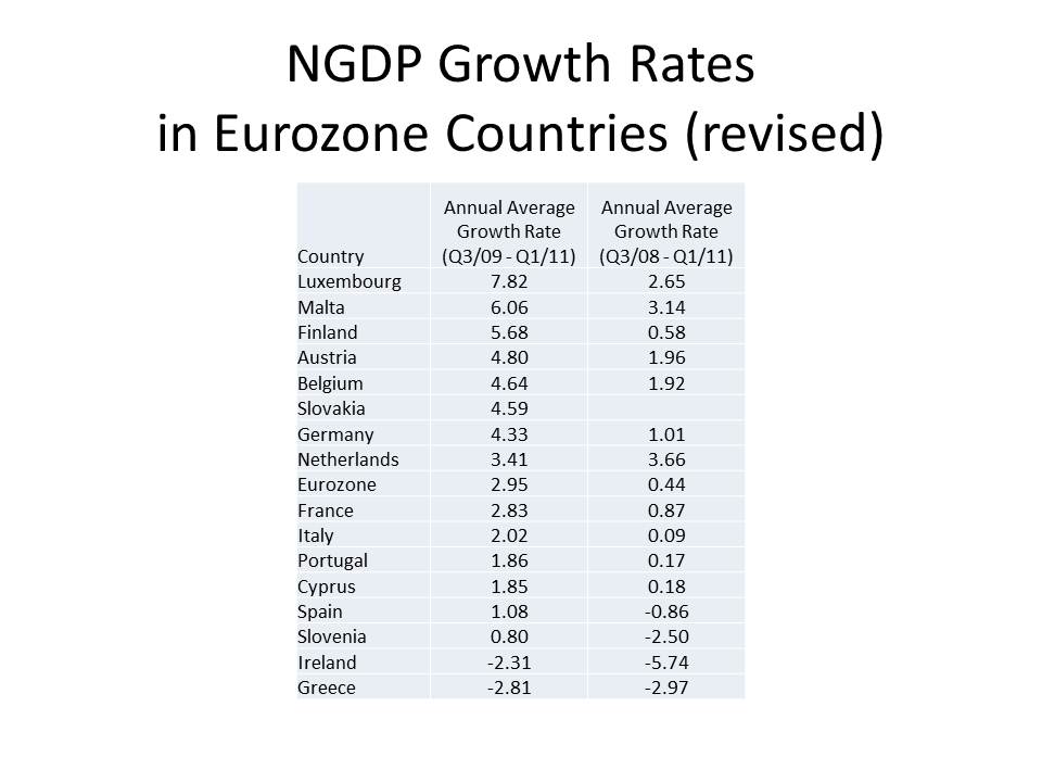 People often assume that inflation is good for debtors and bad for creditors, while deflation is bad for debtors and good for creditors. But that holds only if there are no feedback effects from inflation and deflation. But when deflation increases the burden of real debt and reduces the cash flows available to service that debt, it harms creditors by making too much of debt they hold uncollectable. Similarly, inflation can make creditors better off by reducing the debt burden and increasing the cash flows available for debt service. At this moment, we may well be at a point where creditors, especially banks, have more to gain more from inflation than they would lose. Similarly, the European Union in general, and even Germany in particular, would likely gain far more from an inflation allowing Greece, Portugal, Ireland, Spain and Italy to pay off their bonds in somewhat depreciated euros than from insisting on ruinous austerity measures that can only lead to the self-destruction of the common currency and perhaps the European Union itself. Perhaps that is a topic for a future post.